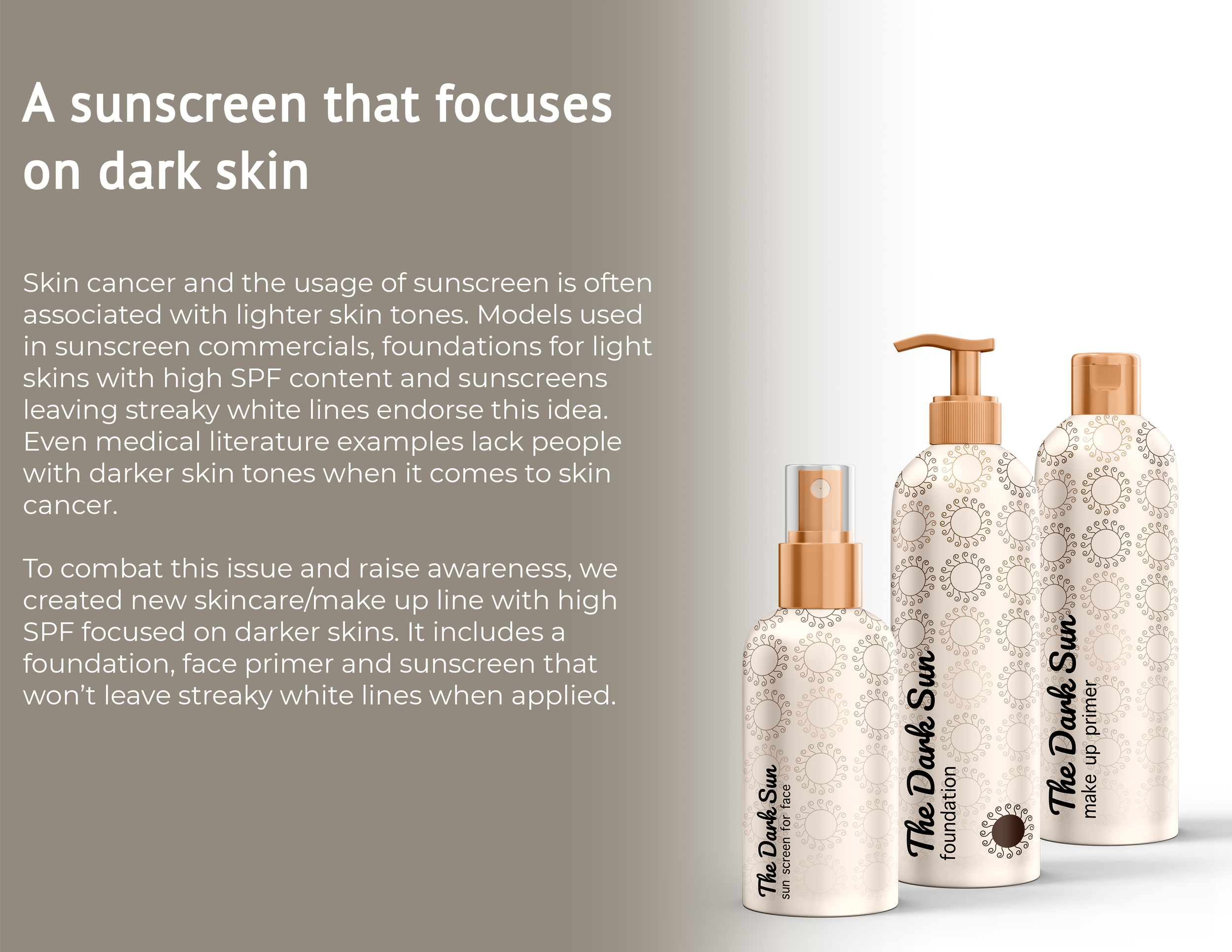 Creating a sunscreen brand specifically made for darker skin to raise awareness of skin cancer.